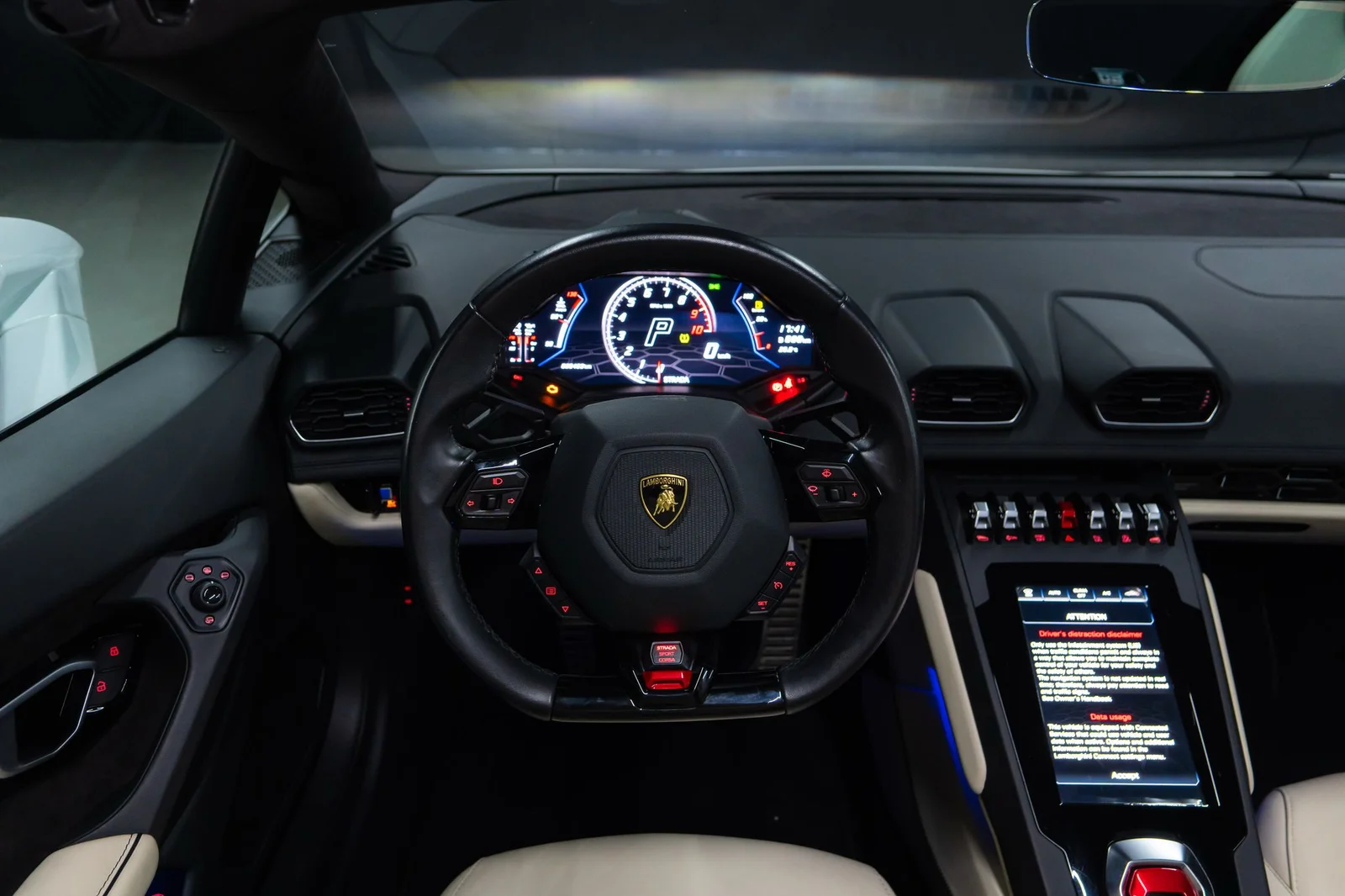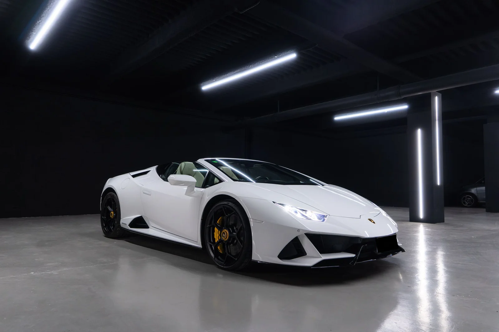 Unleash pure exhilaration with our Lamborghini Huracán EVO Spyder in sleek Nero Noctis black. This exceptional supercar boasts a naturally aspirated 5.2-liter V10 engine, delivering 640 horsepower (470 kW) and accelerating from 0 to 100 km/h in a mere 3.1 seconds. Its striking, aerodynamic design and advanced driving dynamics ensure every journey is both powerful and refined. Ideal for luxury getaways, special events, or simply indulging in the thrill of the open road, this convertible offers iconic Lamborghini performance with a sophisticated edge.​